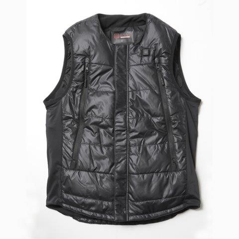 両胸背中に小型のヒートパネルを搭載した軽快なベスト。ボディサイドに伸縮性のあるリブを設けることで、 ライダーの体格を問わないフィット感を実現した。バイクのみならずアウトドアシーンや普段使いでも活躍する。